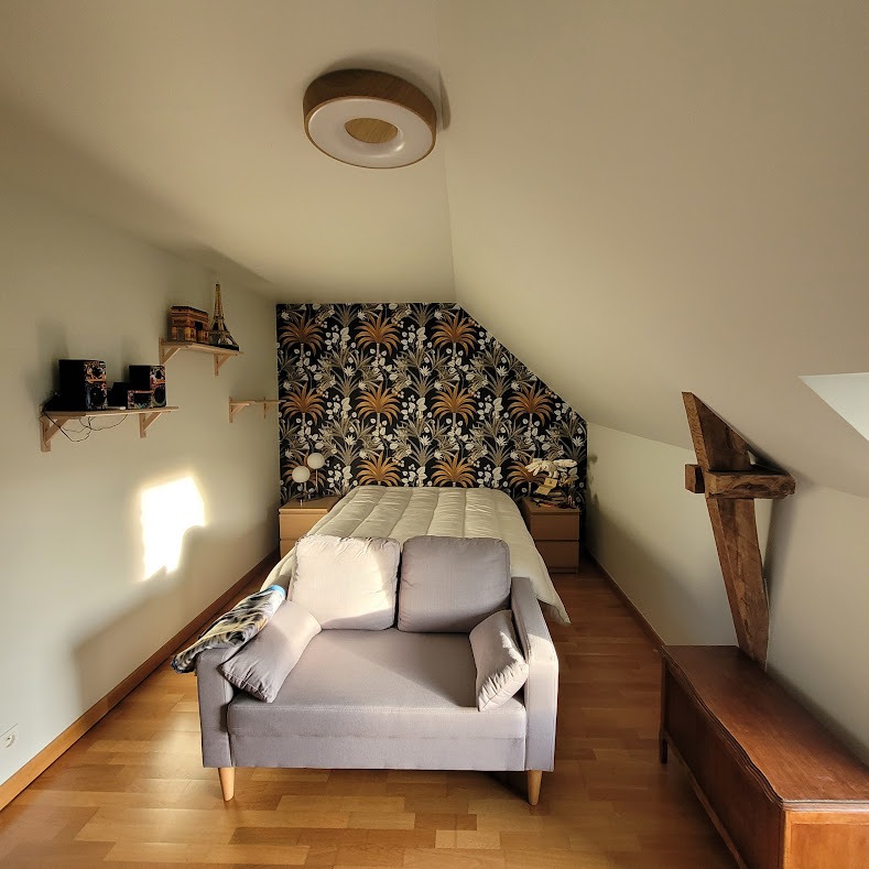 Swipe pour voir les photos avant / après : la chambre prend une nouvelle dimension, plus chaleureuse et plus élégante.